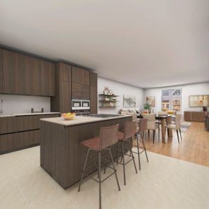Une hauteur sous plafond à 4 mètres, pièce de vie avec insert