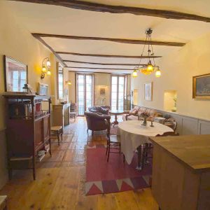 Une hauteur sous plafond à 4 mètres, pièce de vie avec insert