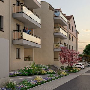 Au premier étage, dans Résidence Neuve, appartement de type 4 bénéficiant d'une terrasse de 9,56 m2 et d'un garage fermé et d'une place de parking privés en sous-sol avec accès depuis l'ascenseur.