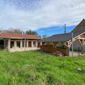 Sur un terrain de 800m2 entièrement clos et arboré, au calme et sans vis à vis, jolie maison ossature bois de 2007.