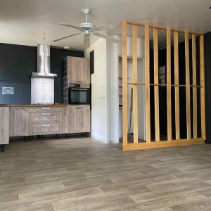 Cuisine aménagée et équipée ouvrant sur séjour et salon, exposition Sud, par trois fenêtres, WC indépenda ...