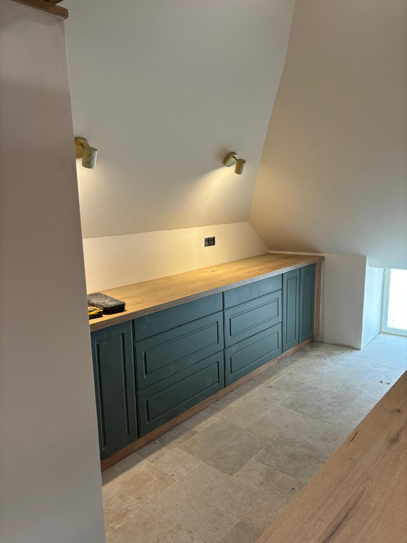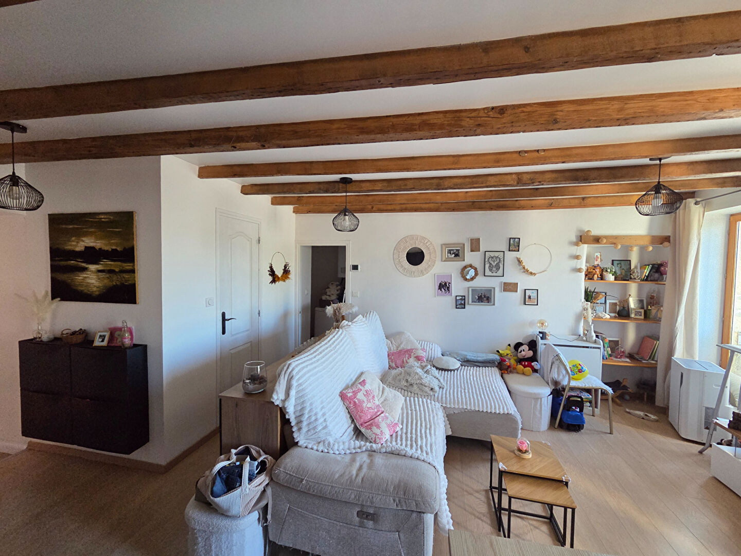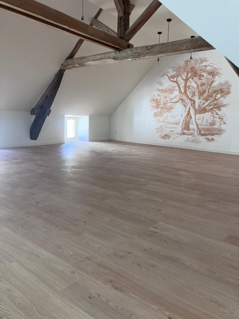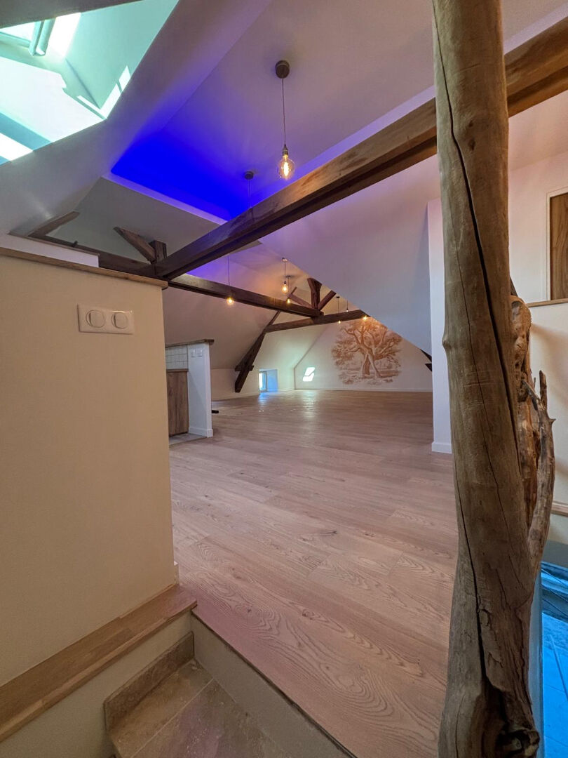 Une hauteur sous plafond à 4 mètres, pièce de vie avec insert