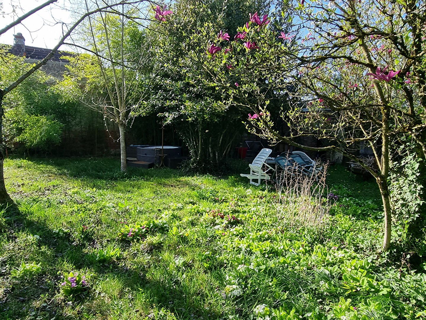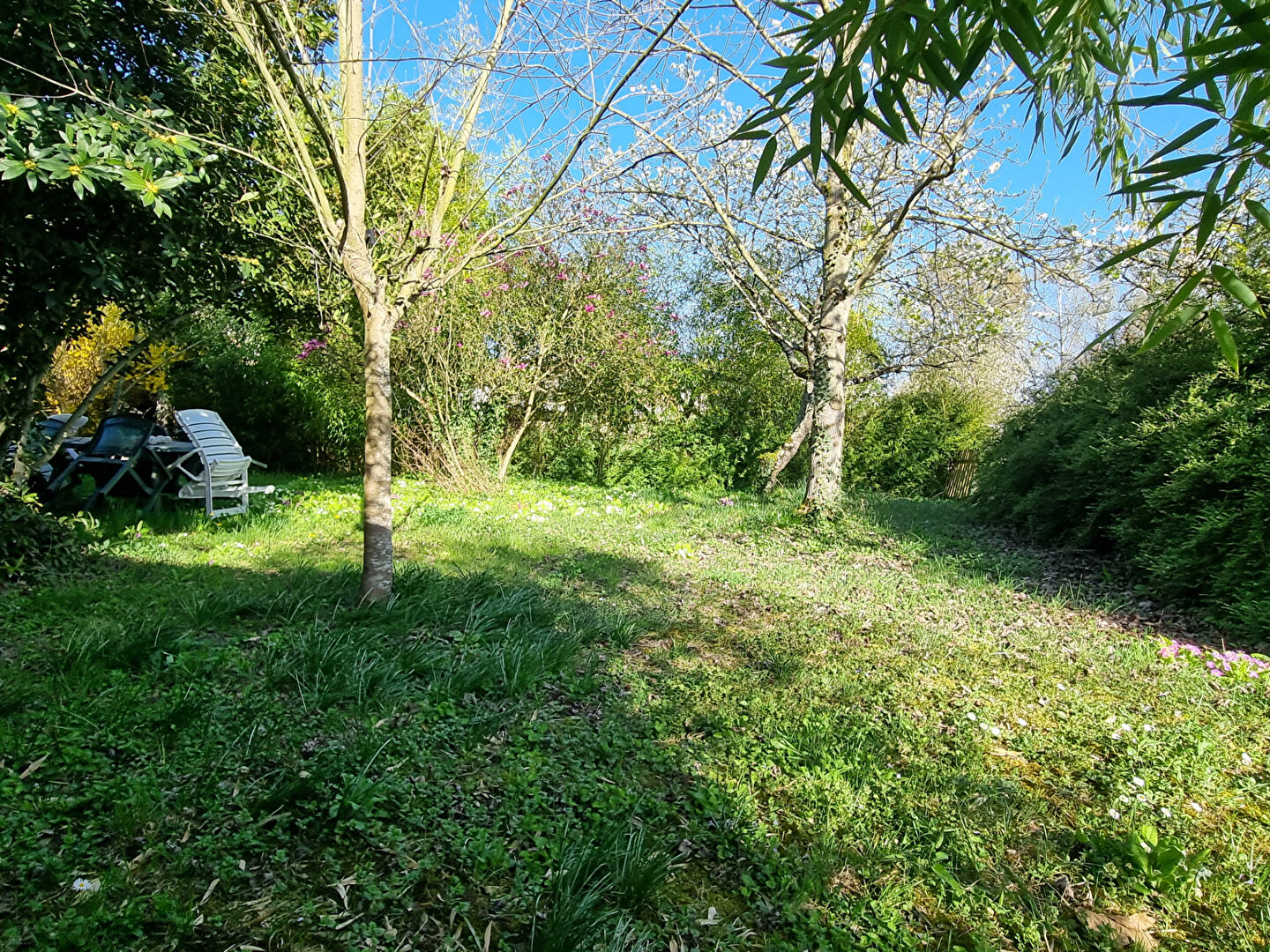 Sur jardin clos et arboré de 1031m2, pavillon sur sous-sol entièrement aménagé.