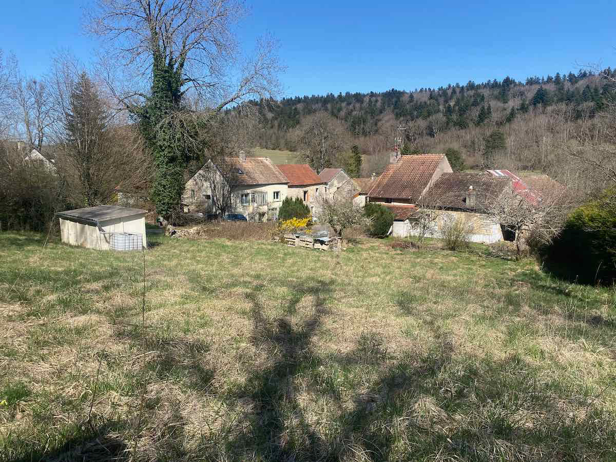 Cour sur le devant et jardin sur l'arrière, belle grange à restaurer d'environ 98m2 au sol sur deux niveaux.