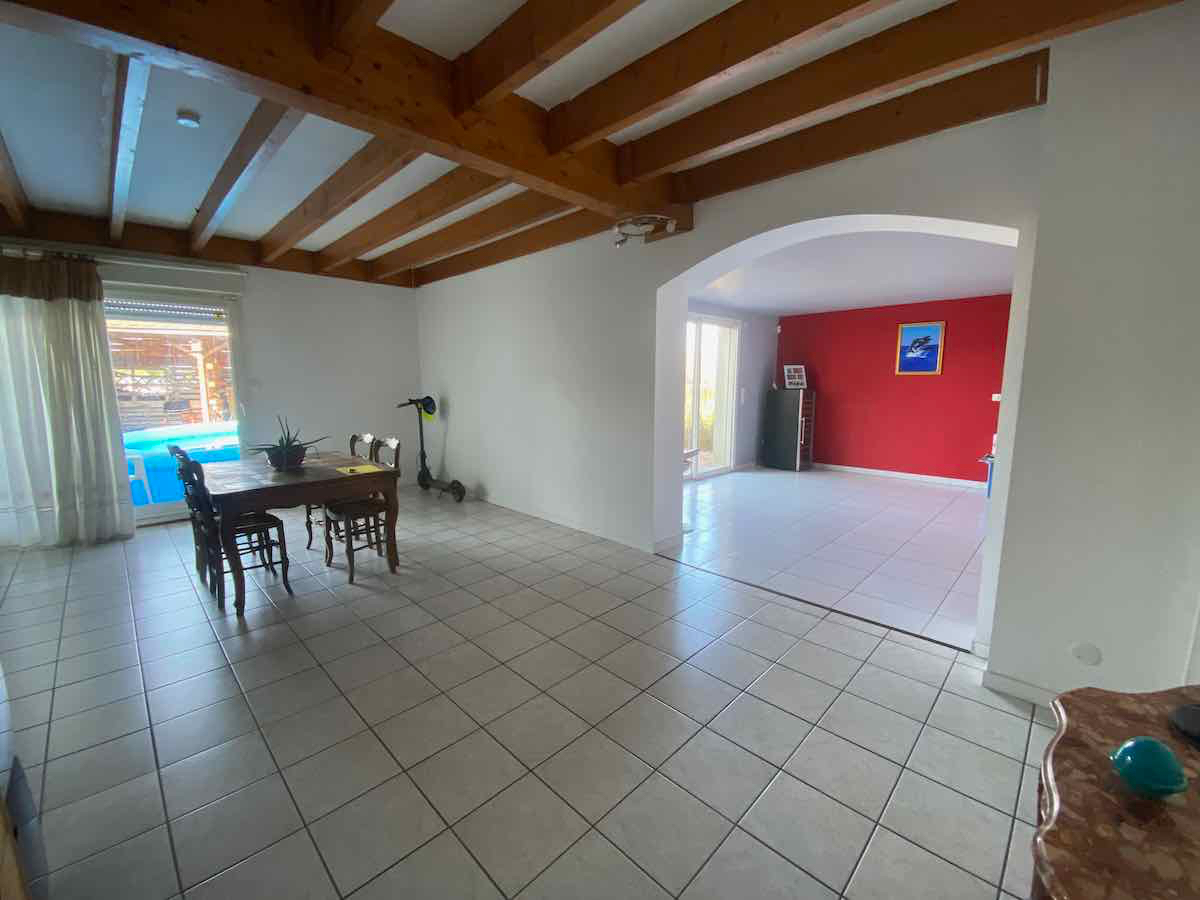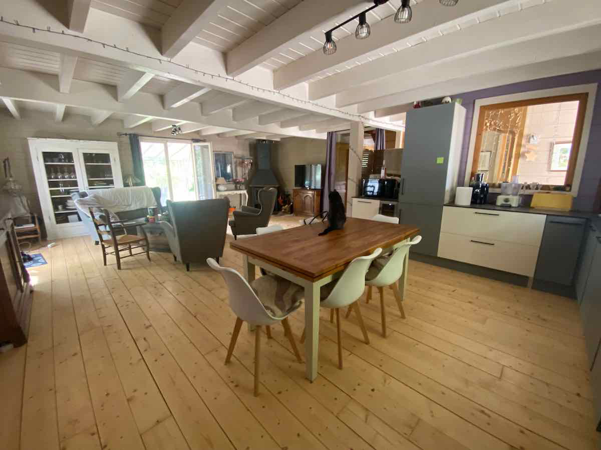 Maison récente bénéficiant de beaux volumes de pièces de vie, une salle à manger de 25m2 et une extension de plain-pied ouvrant sur la terrasse et le jardin de 35m2 environ.